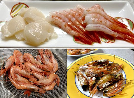 ホタテと甘エビの刺身・甘エビの頭の塩焼き&箱根大涌谷の黒チョコ♪